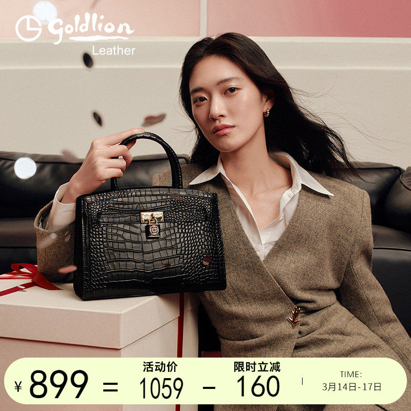 金利来真皮女包鳄鱼纹时尚新款气质百搭单肩手提包女士轻奢通勤包
