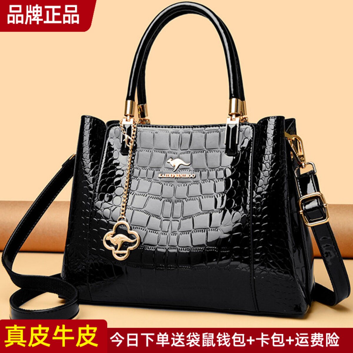 袋鼠真皮女包手提包斜挎包女式2026新款单肩包鳄鱼纹大容量包包女