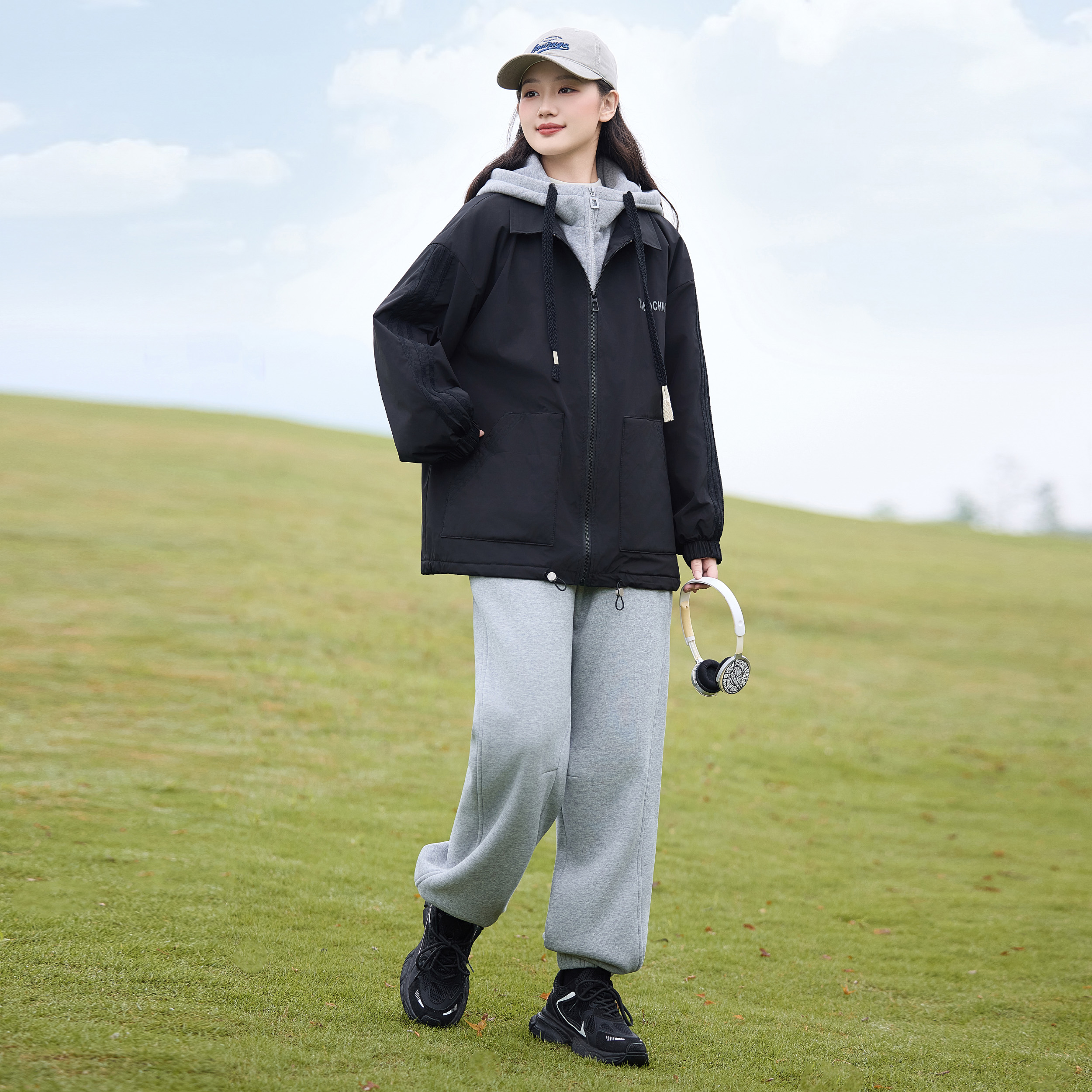 初中女生潮流时尚连帽外套秋新款高中学生宽松休闲运动风开衫卫衣