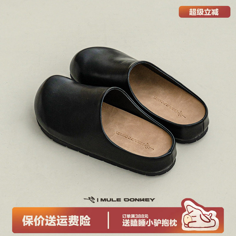 多嘴驴Donkey黑色穆勒鞋女春季外穿包头拖懒人一脚蹬百搭勃肯鞋男