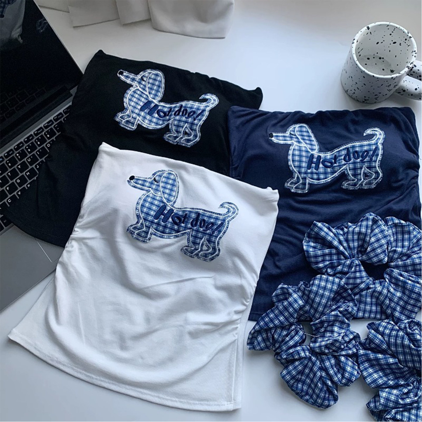 小狗刺绣吊带背心女带胸垫泰式辣妹一字肩抹胸上衣夏裹胸外穿绝美