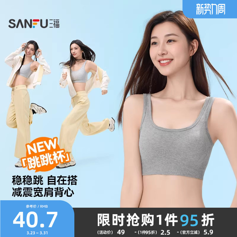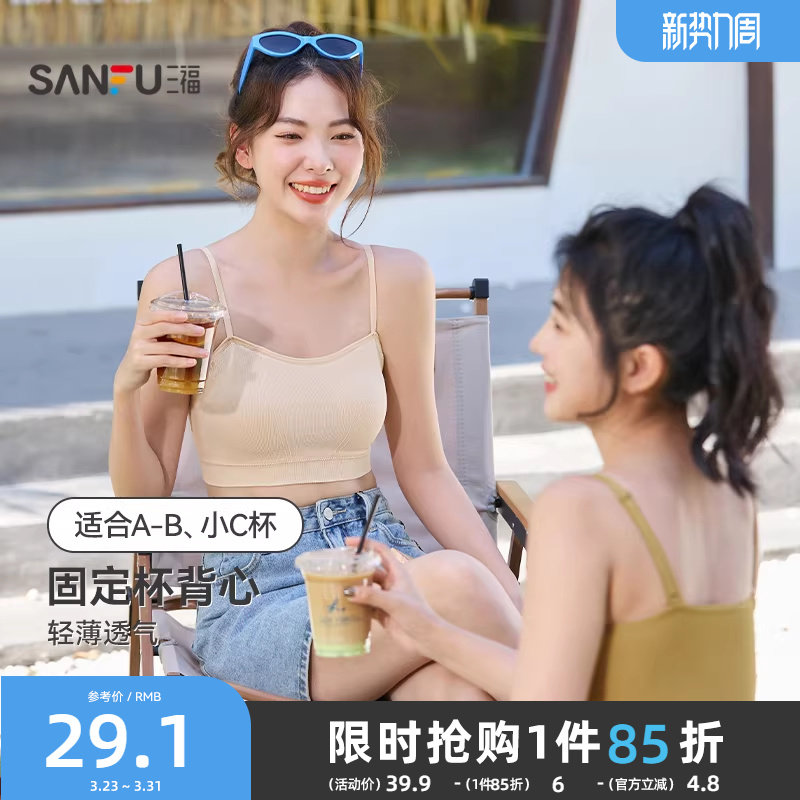 三福凉感背心新款运动风文胸女固定杯抹胸美背细肩带裹胸吊带内衣