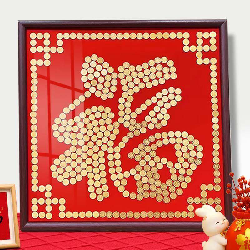硬币福字贴模版绒布春节客厅挂件装饰相框手工礼简单送人福气满满