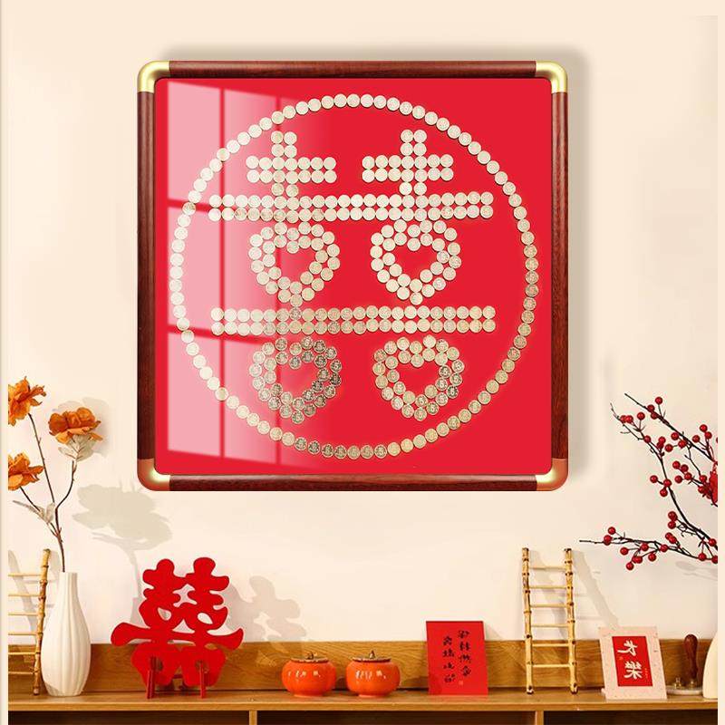 五毛钱硬币福字相框喜字贴乔迁新房挂件5角手工diy结婚礼物送新人