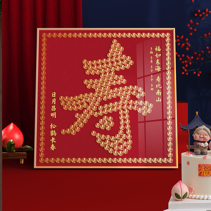 福字寿字硬币相框五角寿字手工diy粘硬币生日礼物送长辈寿字成品