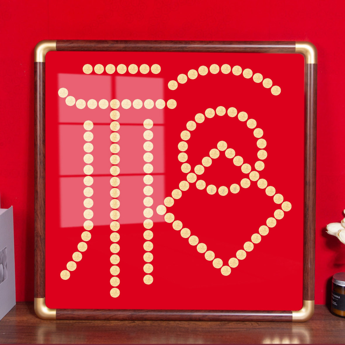 50x50福字五毛钱硬币相框绒布模板 中式家居挂画朋友乔迁搬家礼品