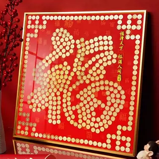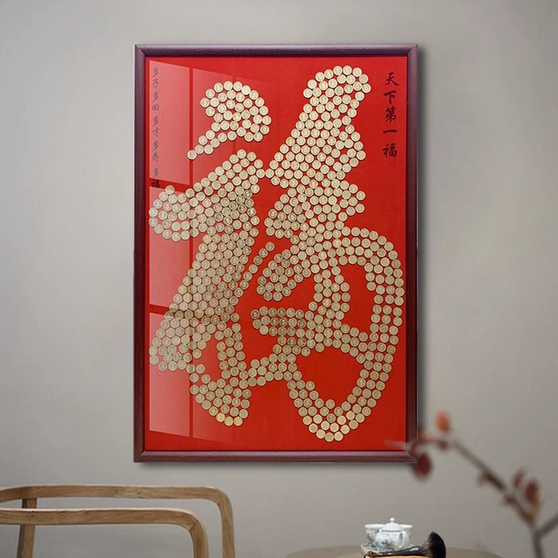 乔迁礼物五毛钱硬币装饰画福字相框轻奢挂件5角手工diy福字贴送人