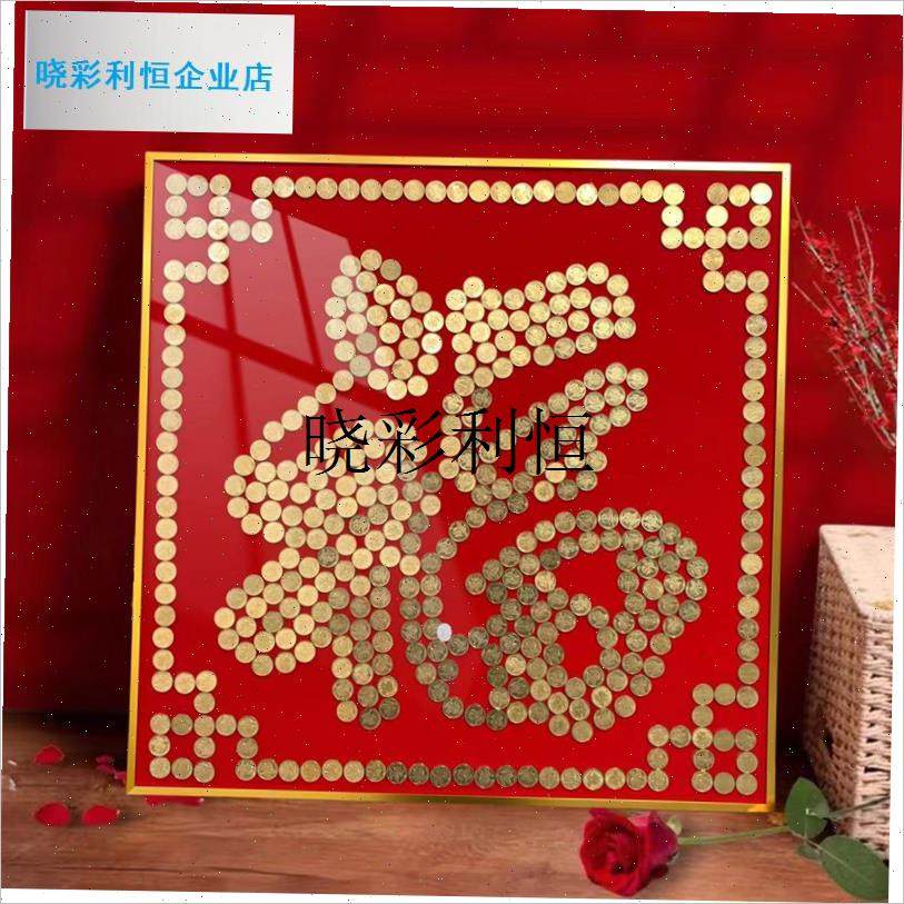 硬币福字相框新年字贴乔迁新房挂件5角手工diy结婚礼物送新人