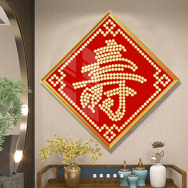 硬币福字贴模版绒布春节客厅挂A件装饰相框手工礼简单送人福气满l