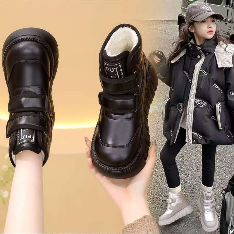 儿童雪地靴皮面加绒加厚2025冬季新款男女童棉靴保暖棉鞋防滑靴子