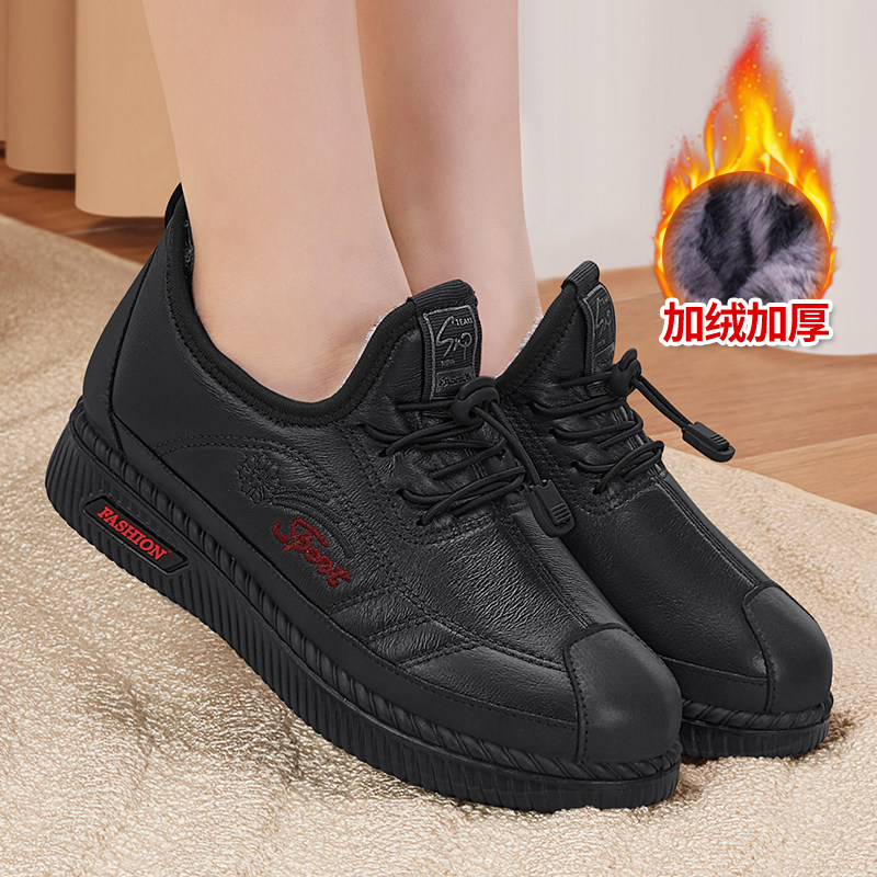 冬季老北京棉鞋女加绒保暖妈妈鞋加厚防滑雪地靴皮面防寒奶奶棉靴
