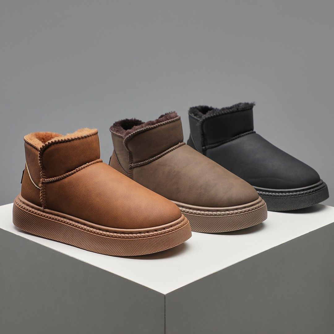 2025冬季雪地靴皮面加绒防水爸爸鞋防滑加厚绵羊毛老北京棉鞋棉靴