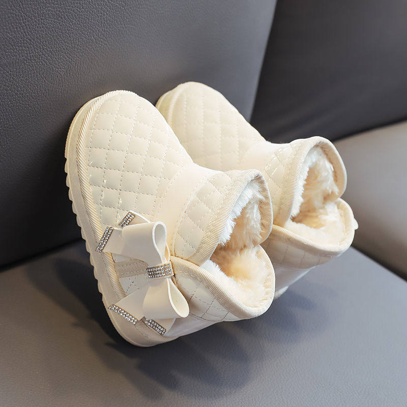 巴布豆女童加绒加厚保暖冬季雪地靴皮面防水东北抗寒儿童大棉鞋子