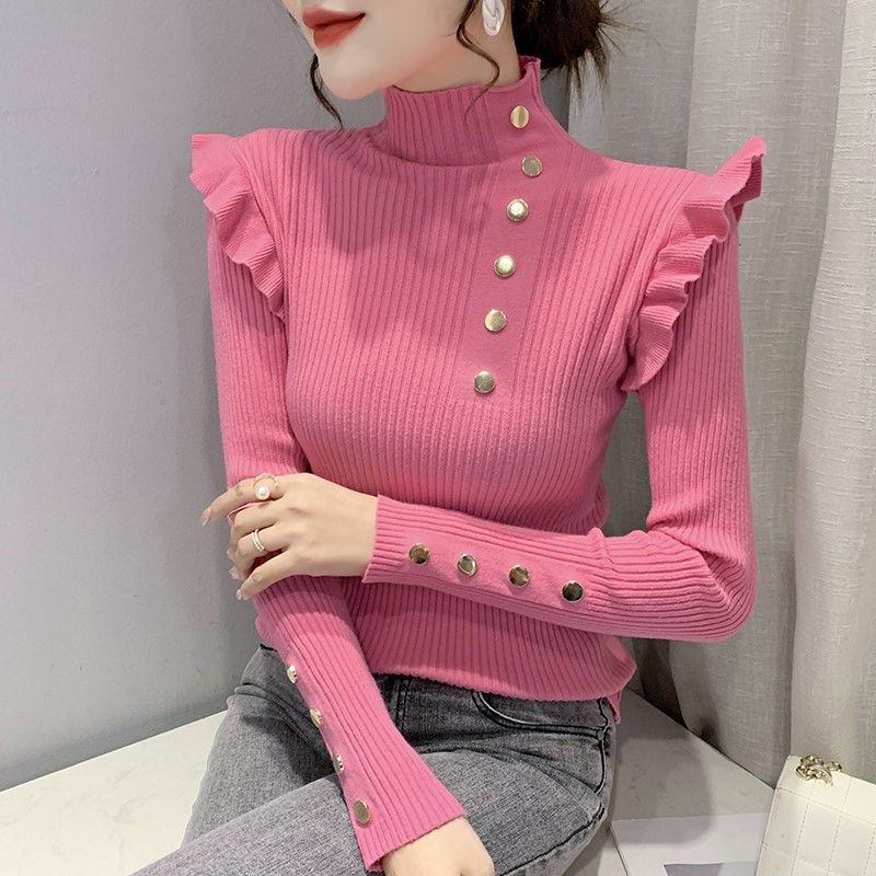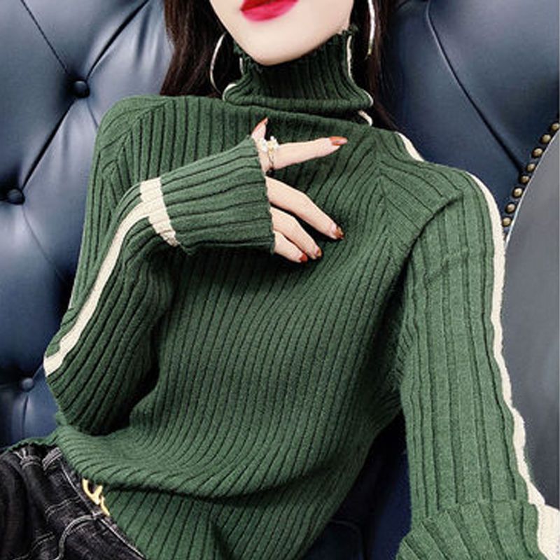 - 秋冬韩版新款女士毛衣套头中长款前短后长宽松大码针织衫打底上衣