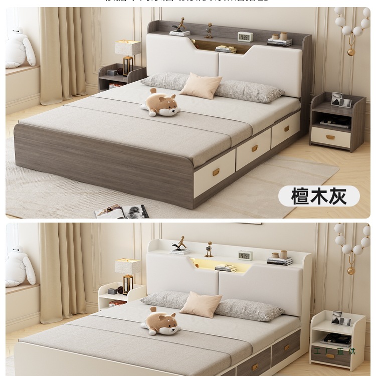 榻榻米床箱多功能一体小户型双人板式床现代简约高箱收纳储物床柜