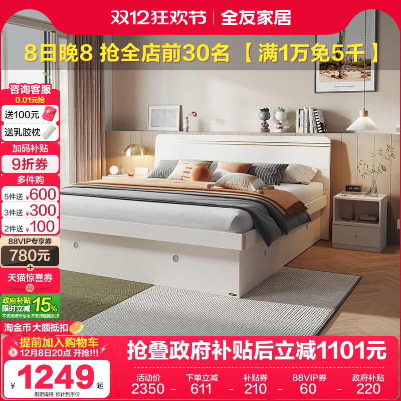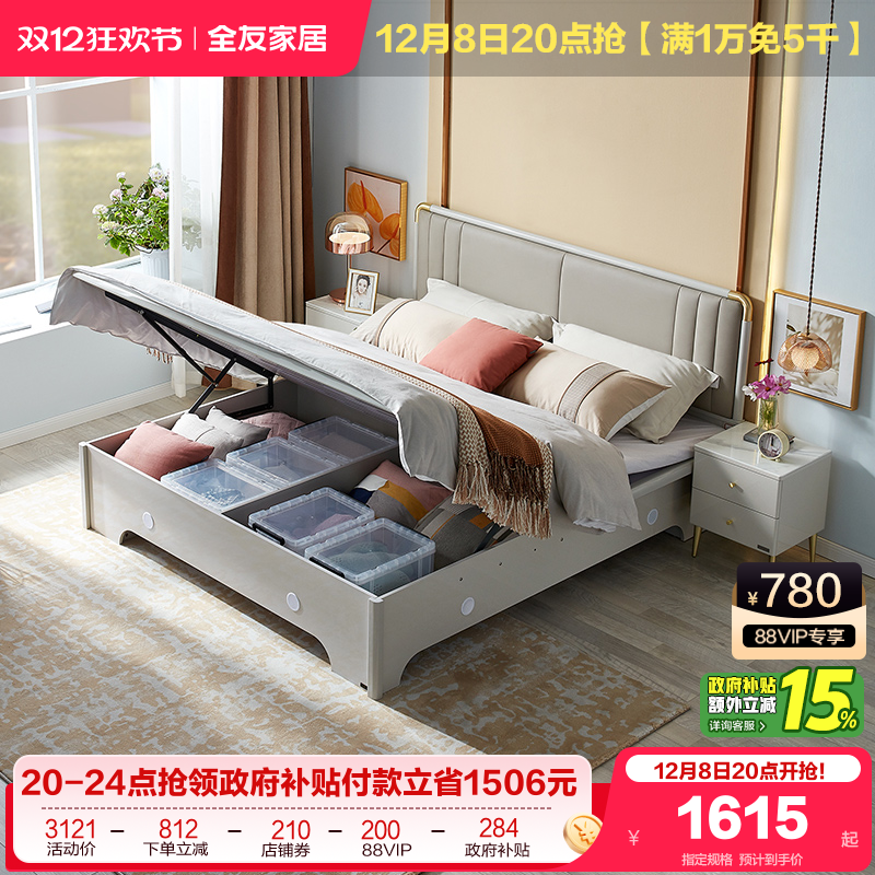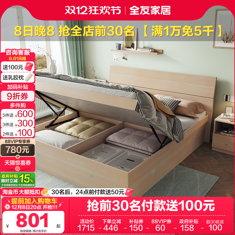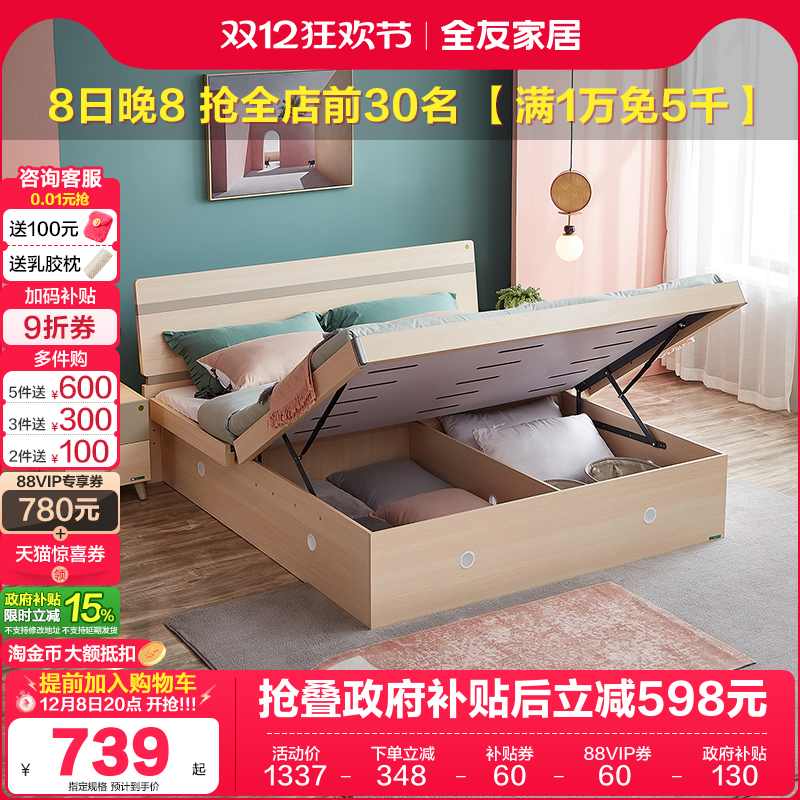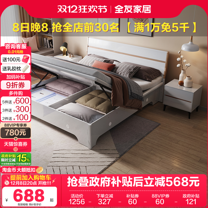 政府补贴全友家居1米8双人板式床次卧室小户型女生收纳储物高箱床