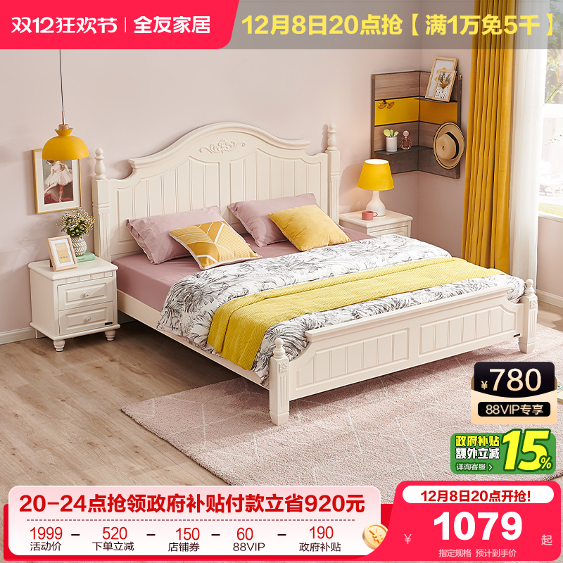 全友家居1米8双人大床主卧室家具美式1米5储物床简约公主板式床架