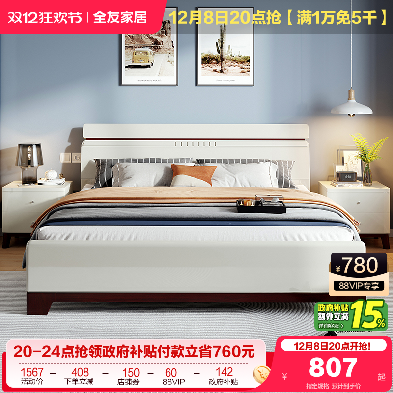 全友家居原木风板式床1米8双人床简约小户型卧室家具储物落地床