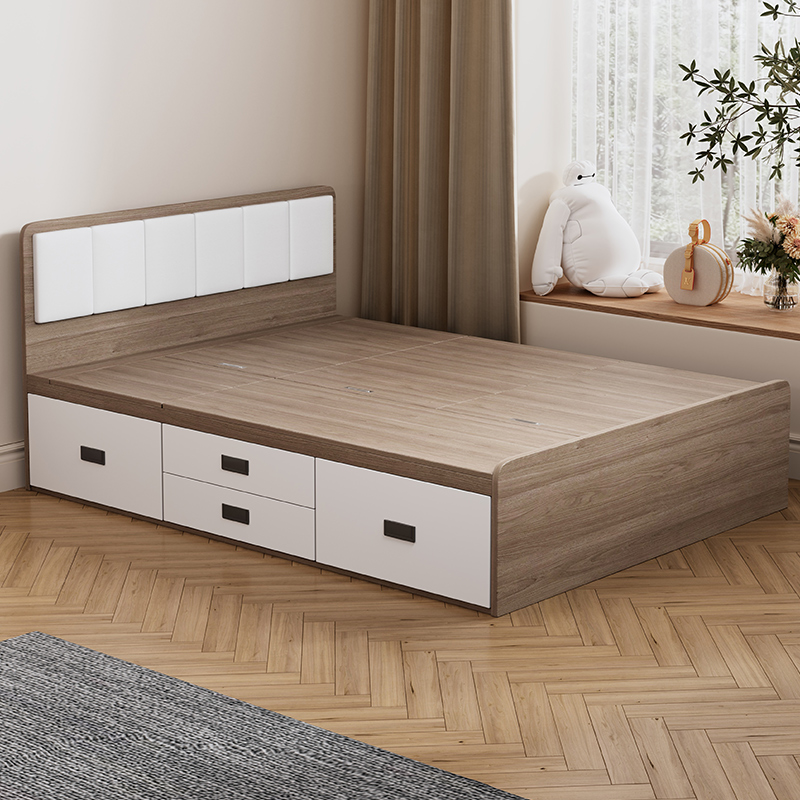 掌上明珠免漆板床现代简约1.5米1.8M双人板式高箱储物收纳大床YJ
