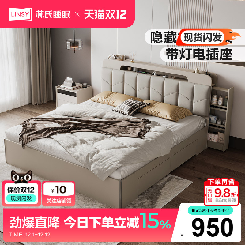 林氏家居双人床板式床储物柜一体小户型省空间卧室高箱床林氏木业