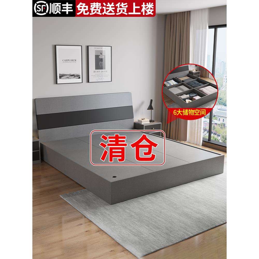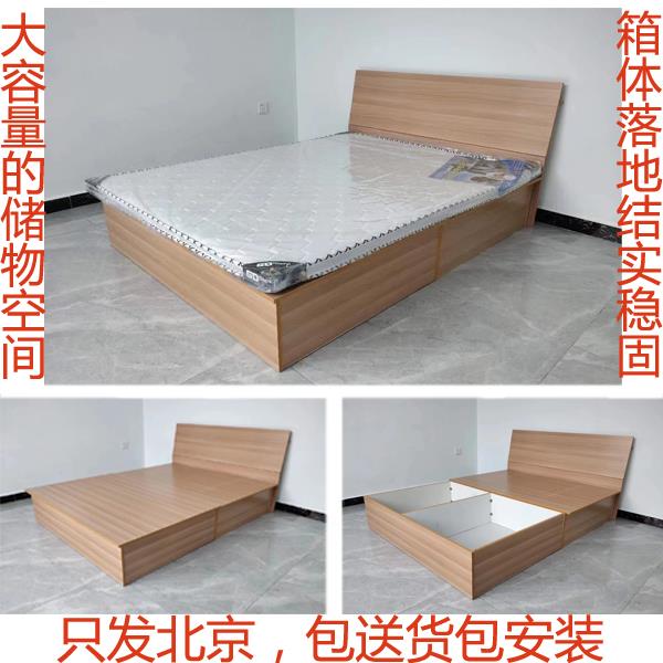 床现代简约双人床主卧1.5米榻榻米储物床出租房专用床板式收纳床