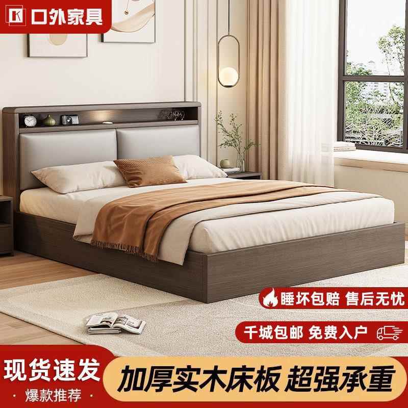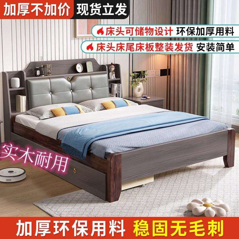 实木床家用15米现代简约储物双人床18米板式出租房12m单人床架