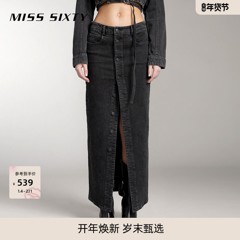 【进口牛仔面料】Miss Sixty半身裙牛仔长裙复古百搭女前开衩性感