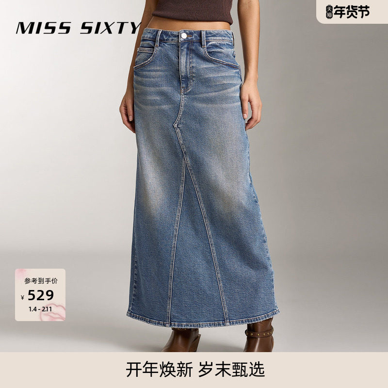 【进口牛仔面料】Miss Sixty半身裙牛仔长裙复古女美式直筒