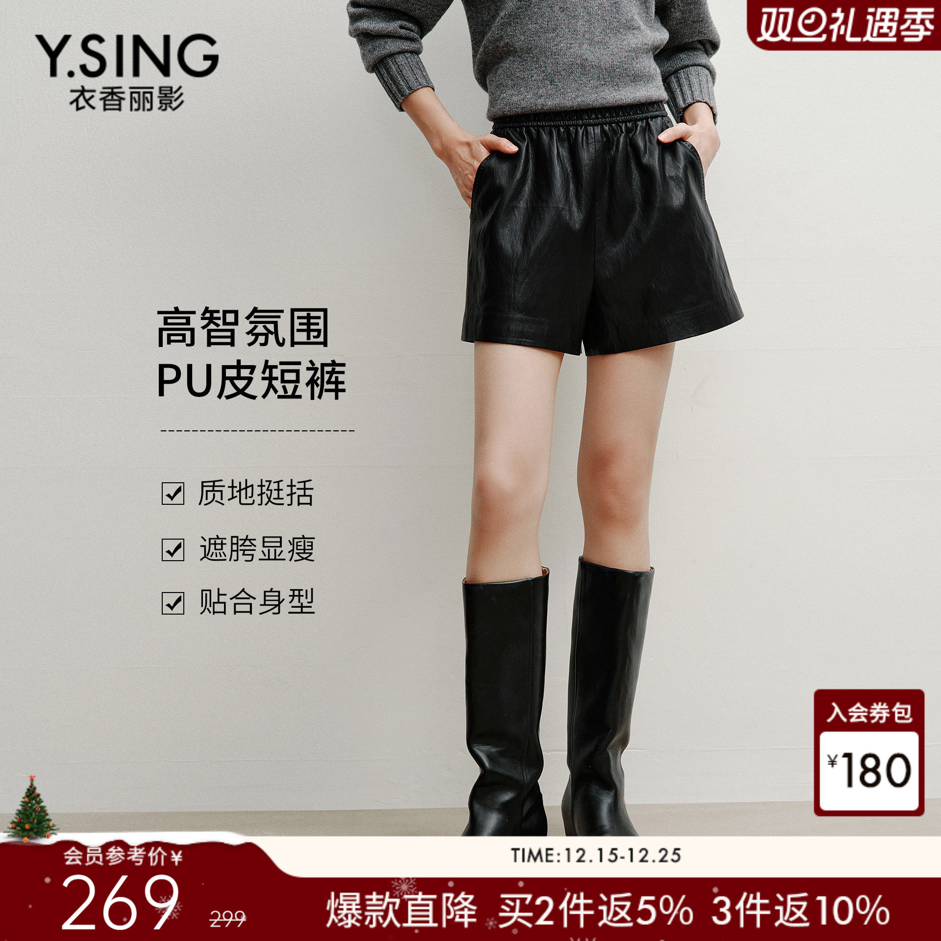 衣香丽影黑色PU皮裤短裤女2025冬装新款美式舒适松弛感直筒裤子