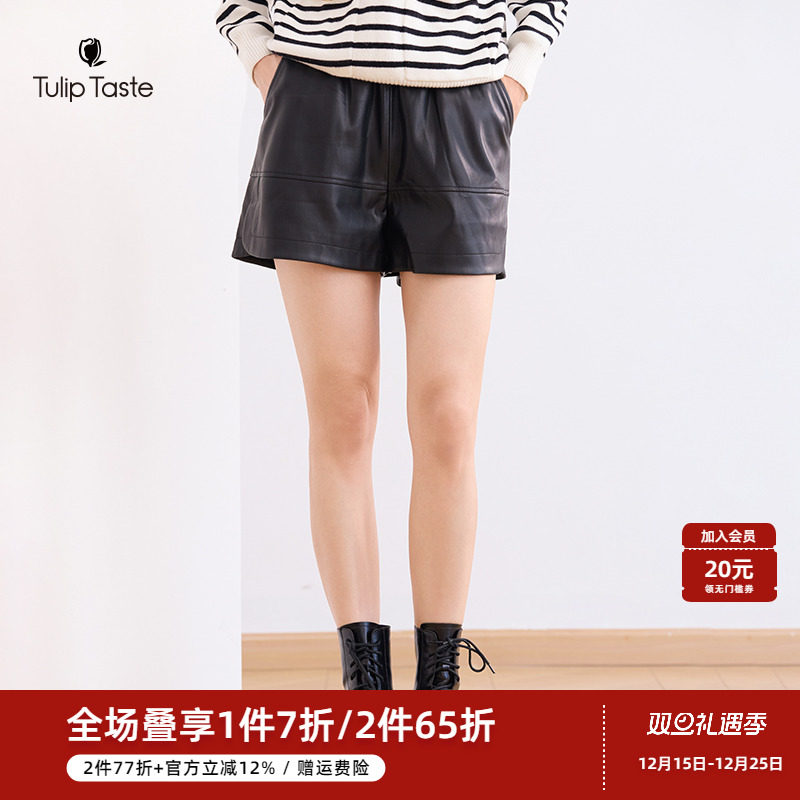 HAVVA设计感PU皮裤抽绳松紧腰短裤舒适女士裤子2026年春KD3-3090