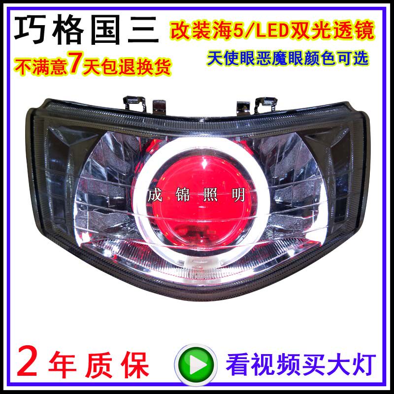 巧格国三福喜国二花嫁摩托车大灯总成改双光透镜氙气灯天使恶魔眼