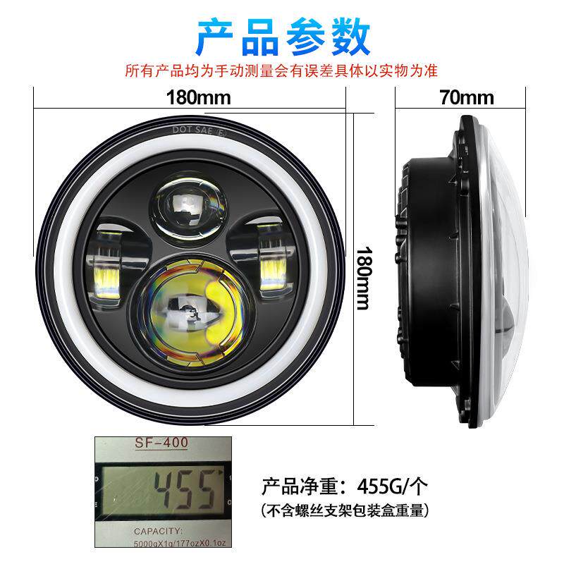 全圆4珠牧马人大灯汽车灯摩托车改装7寸天使眼led大车灯工作灯