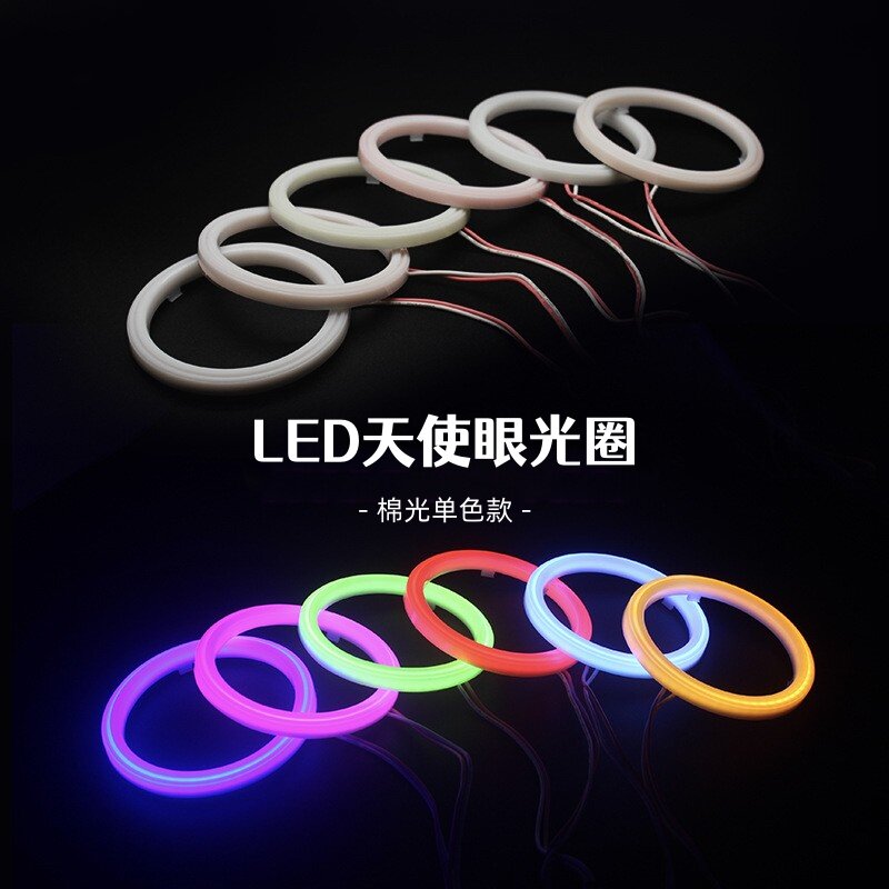 棉光LED天使恶魔眼光圈白红蓝黄冰蓝光12V摩托汽车大灯日行灯改装