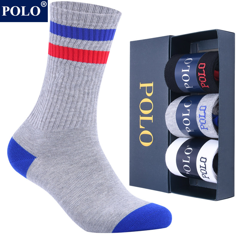 polo袜子男冬季长筒棉袜防臭吸汗运动保暖个性厚款无骨条纹高筒袜