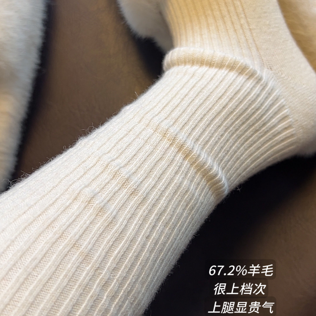 贵气羊毛袜~miu系显瘦过膝袜~白色长筒袜女袜条纹高筒袜保暖秋冬