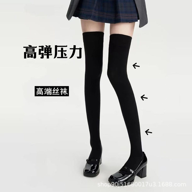 日系显瘦条纹高筒袜女春秋薄绒长筒袜压力jk过膝袜棉冬季大腿长袜