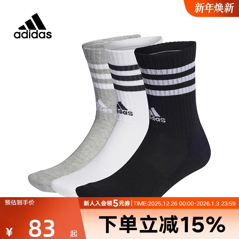 Adidas阿迪达斯袜子男女同款新款袜舒适加厚保暖条纹高筒袜IC1323