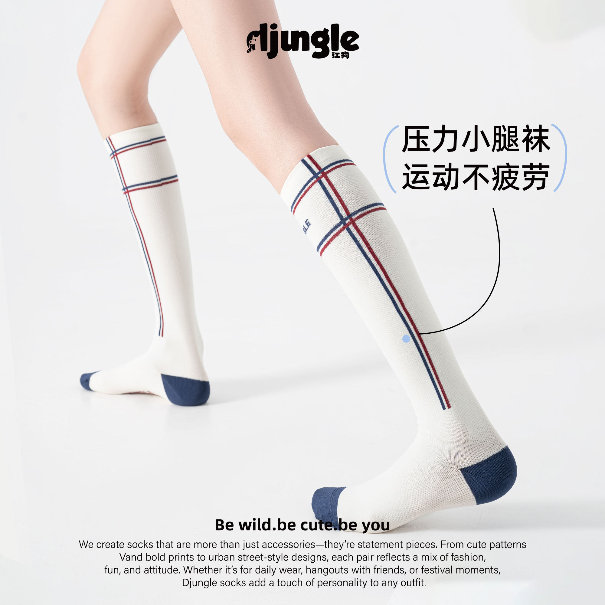 小腿袜女显瘦长筒袜压力运动撞色条纹高筒袜美式复古春秋纯棉袜子