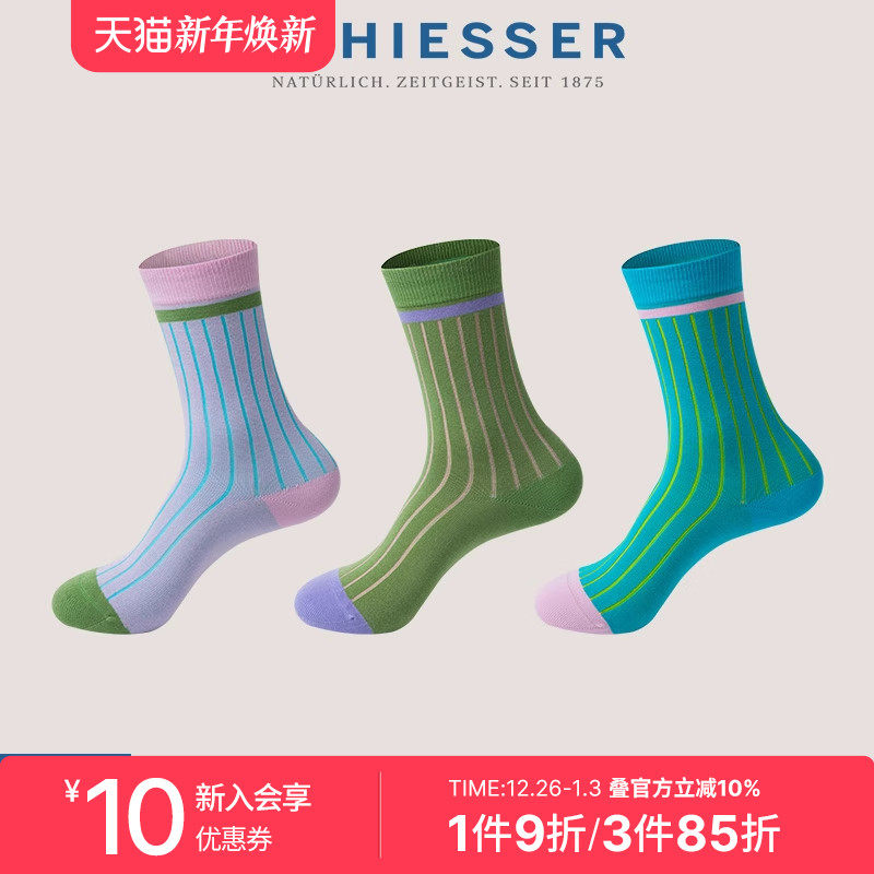 3双装SCHIESSER舒雅奥莱男女士中性3A抗菌抑菌炫彩条纹高筒袜子