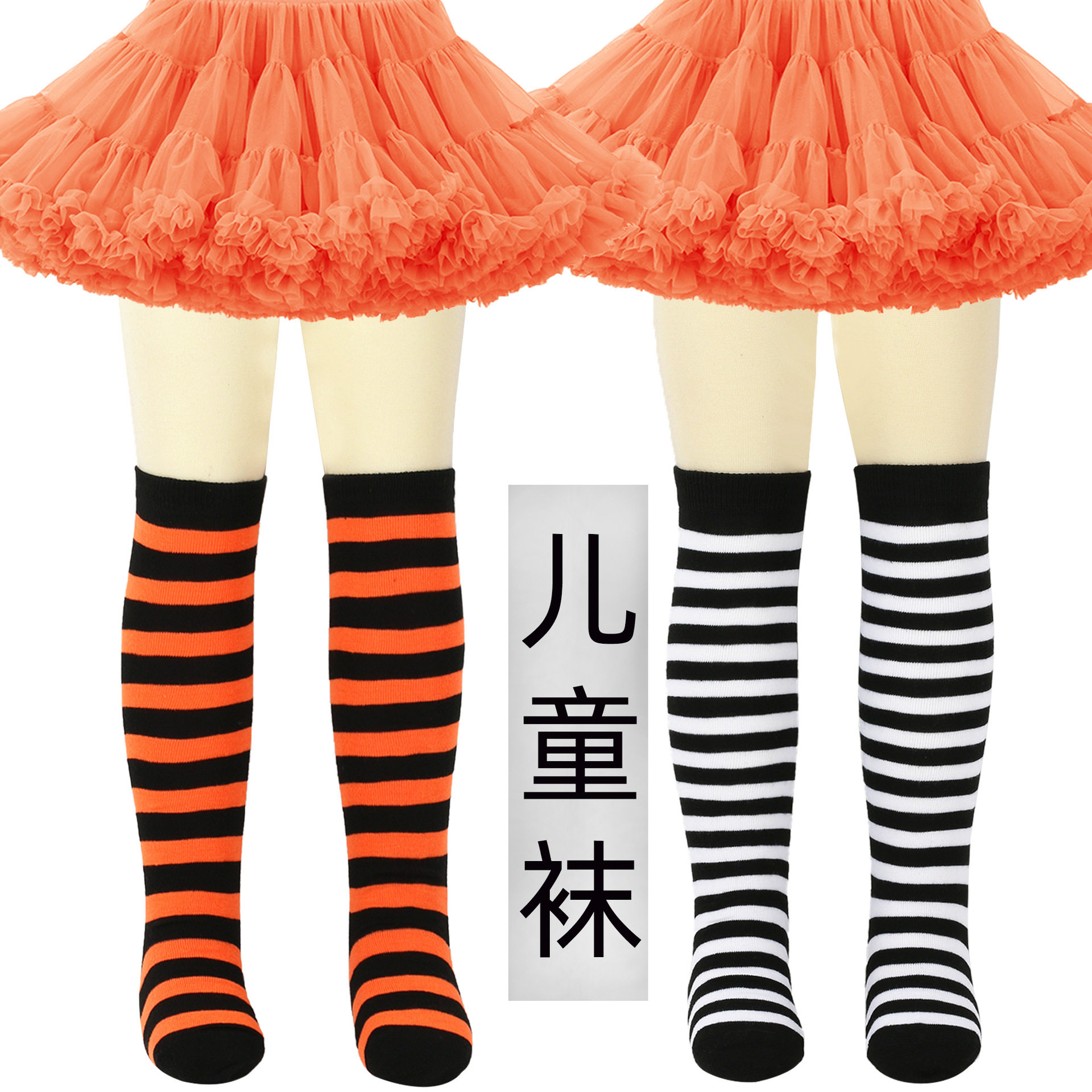 女童时尚黑红条纹高筒袜女宝宝纯棉百搭圣诞演出袜子中筒袜长筒袜