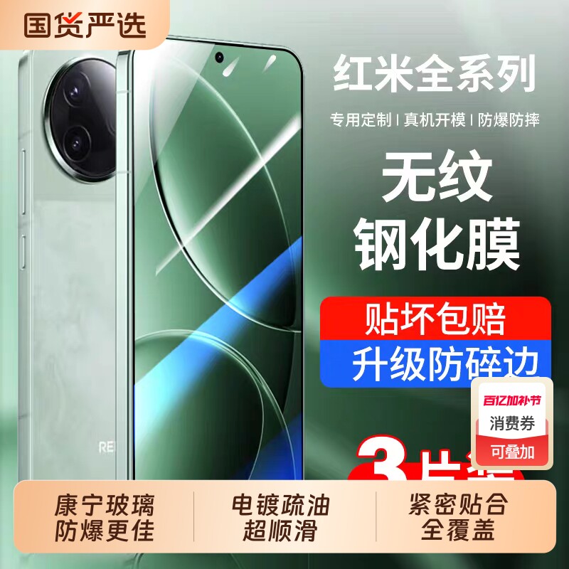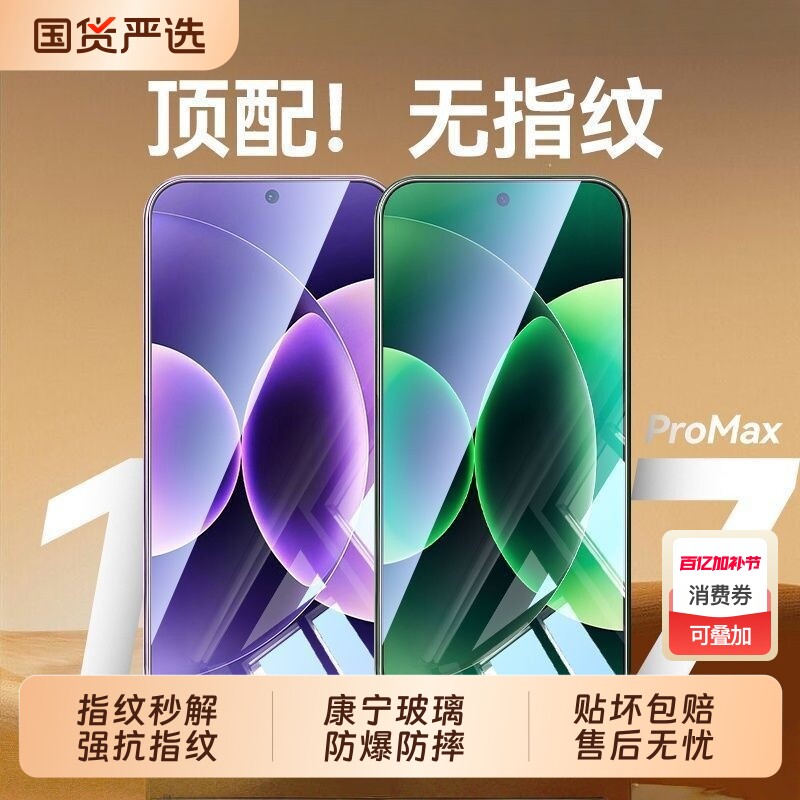 适用小米17ProMax钢化膜15/14全屏防爆13红米k80至尊版turbo4手机贴膜k70k60防指纹note11抗蓝光12tpro秒贴膜