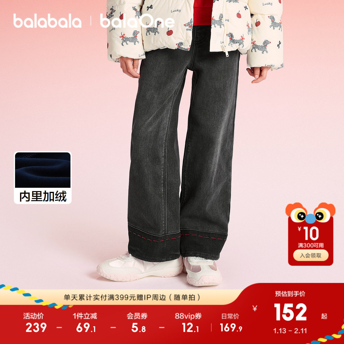 【balaOne】巴拉巴拉童装儿童裤子女童2025新款春秋装牛仔裤直筒