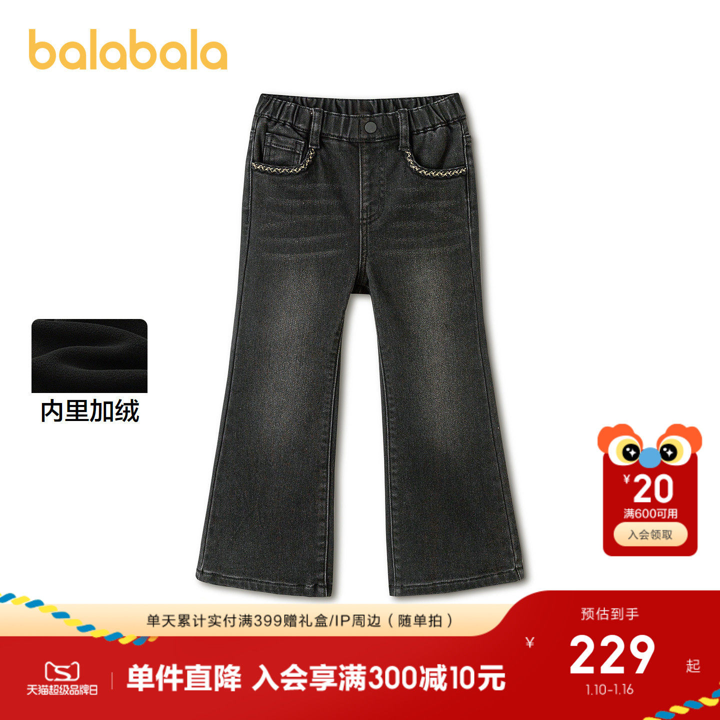 【商场同款】巴拉巴拉童装儿童裤子女童2026春新款牛仔喇叭裤抓毛
