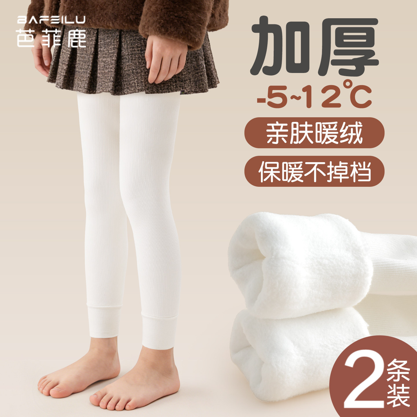 女童打底裤加绒加厚秋冬款女孩九分裤冬季外穿保暖白色儿童裤子女