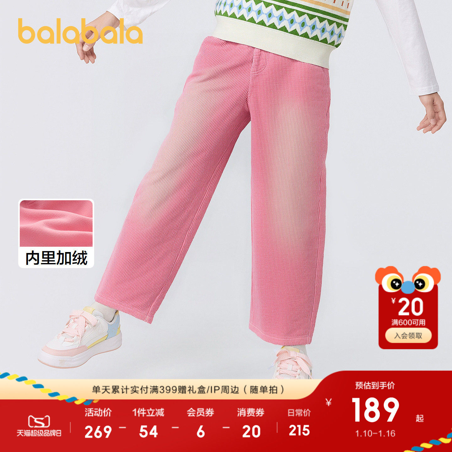【商场同款】巴拉巴拉童装儿童裤子女长裤2025冬新款灯芯绒直筒裤