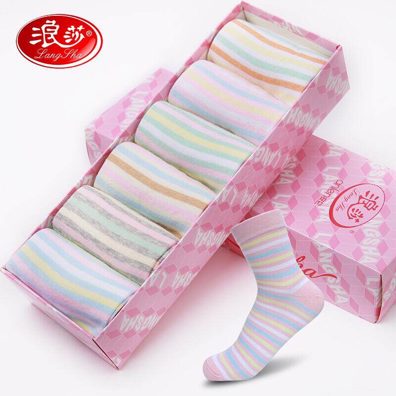 浪姿L9980 盒装女士纯棉袜子女中筒袜纯棉独立包装彩色休闲袜四季