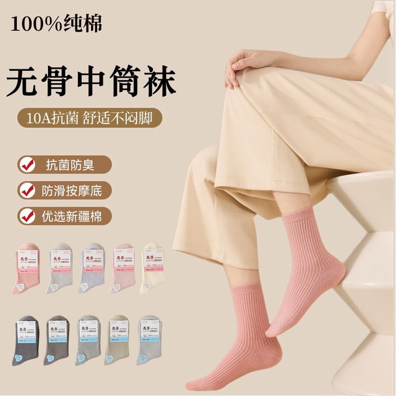 女士纯棉袜子中筒秋冬长筒袜新疆棉吸汗防臭双针抗起球无骨月子袜