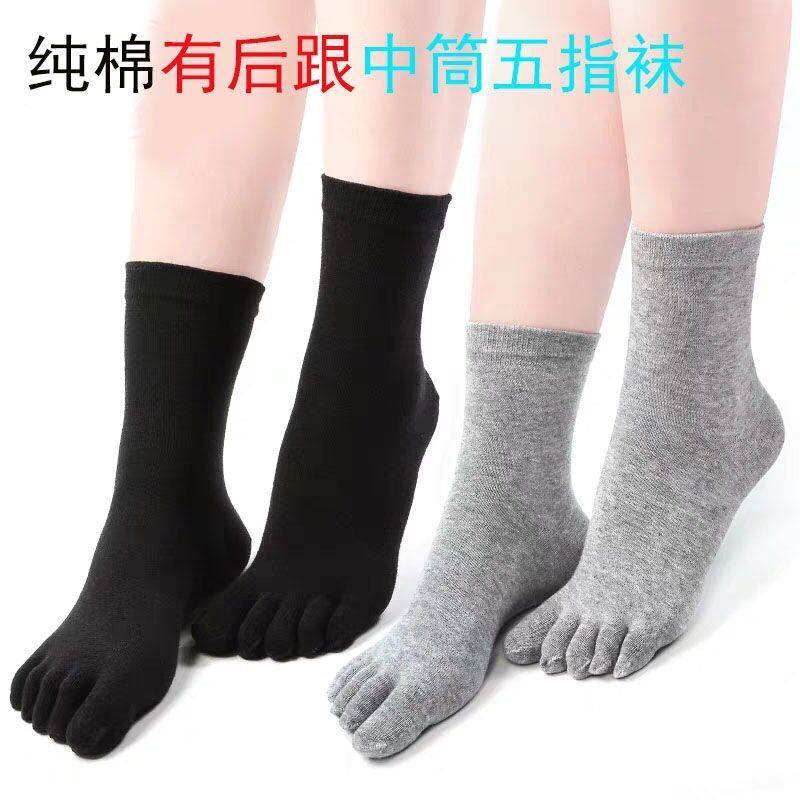3/5双装五指袜女士纯棉袜中筒防臭袜子吸汗黑色秋冬季分脚趾袜子