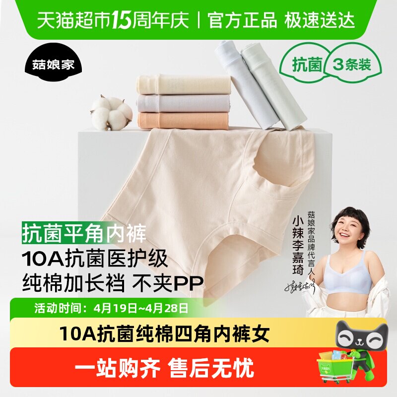 菇娘家10A抗菌纯棉四角内裤女大码女士平角裤女生透气短裤安全裤