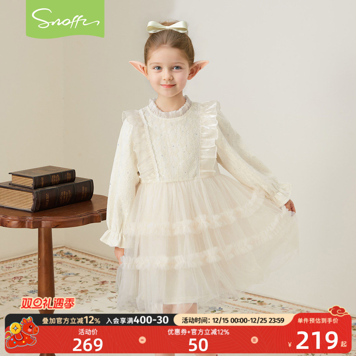 斯纳菲儿童连衣裙25冬装新款女童公主裙千金风蕾丝洋气加绒蛋糕裙